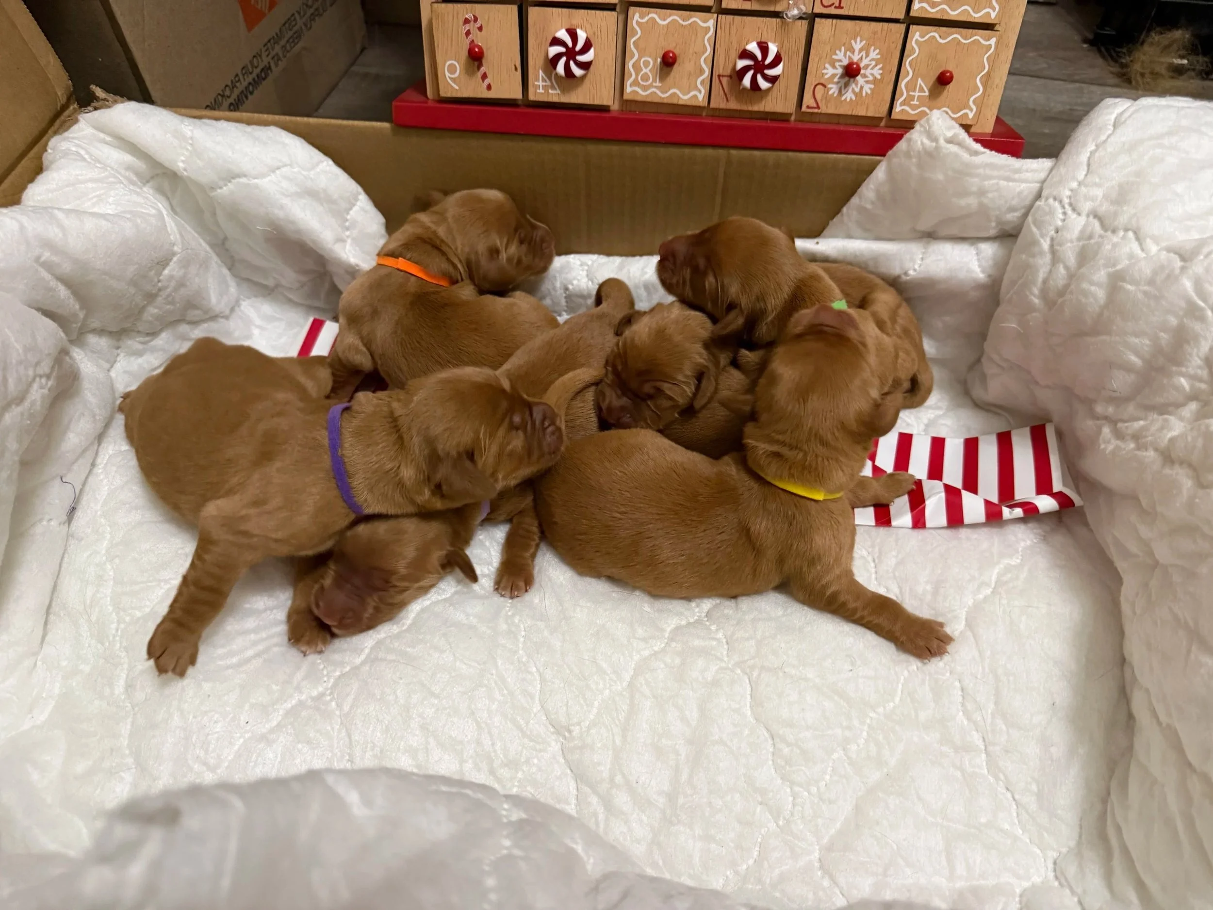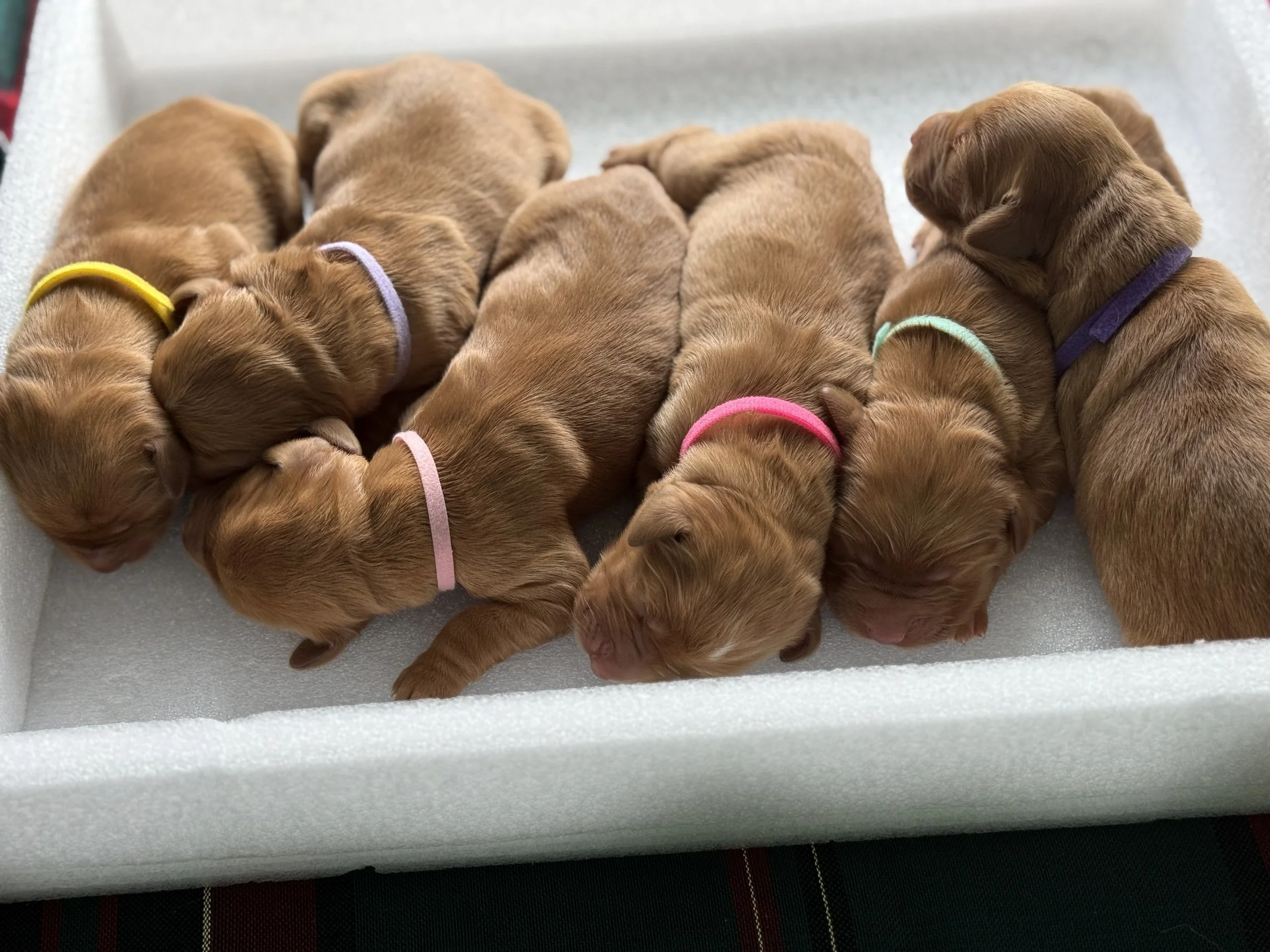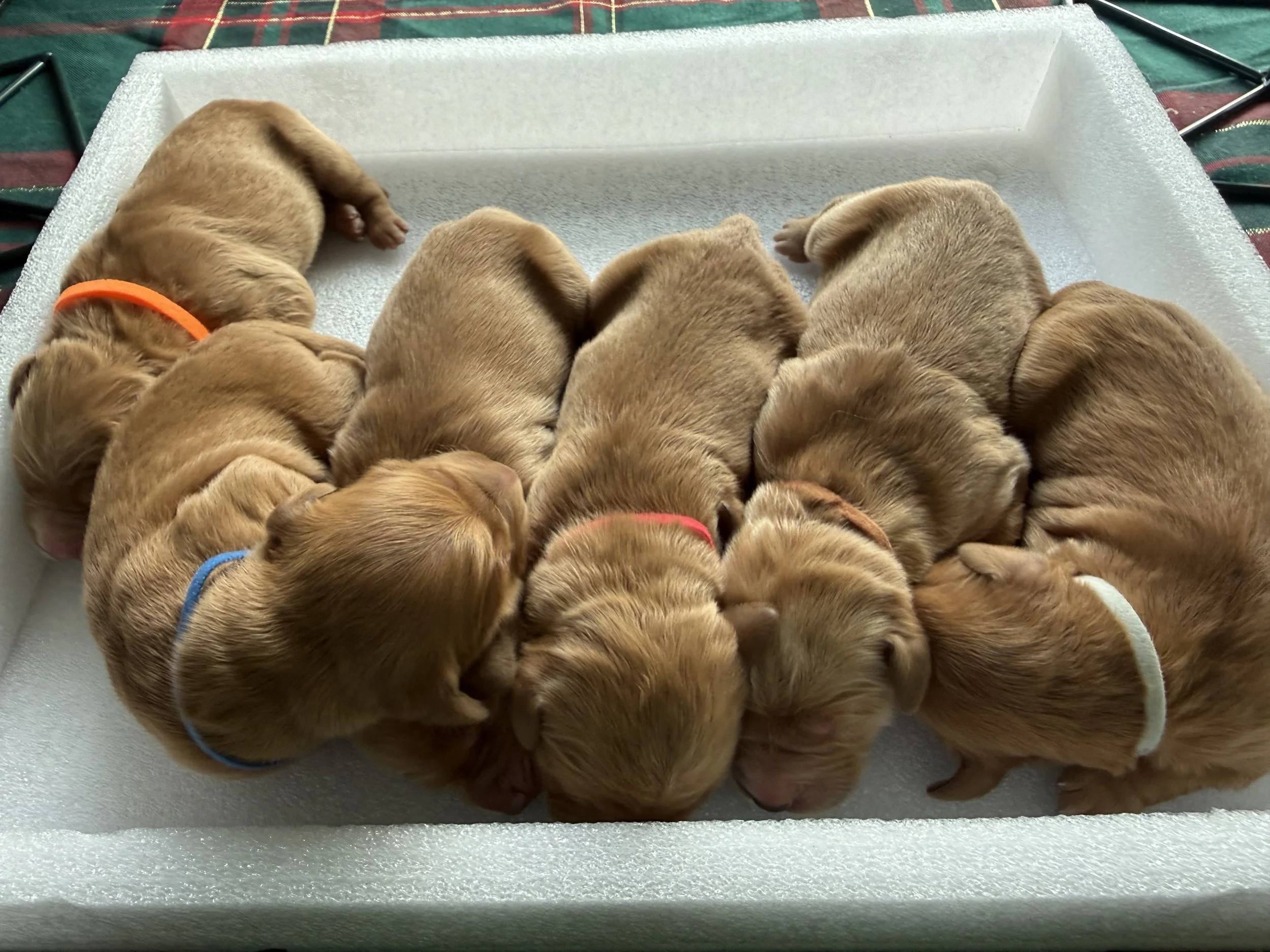 Ruby and Wyatt’s pups are here born 12/12/25. 6 girls and 6 boys!!!